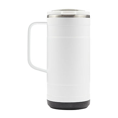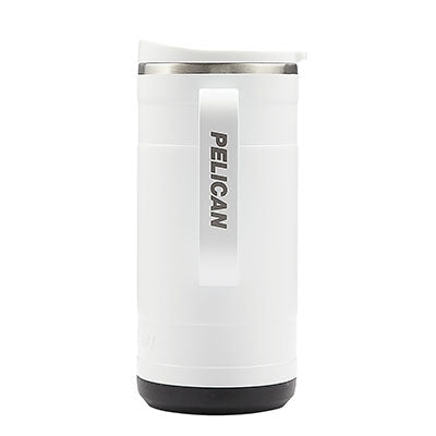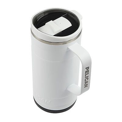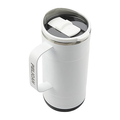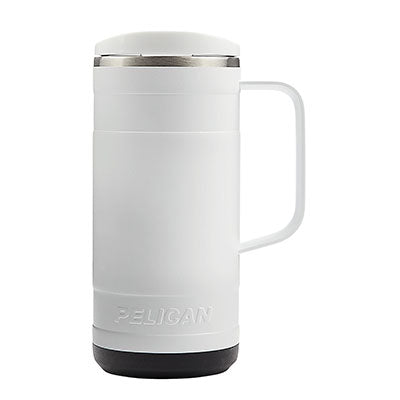 Whether sipping a hot cup of tea in the morning or a freshly brewed iced coffee in the afternoon, the 18 oz. Pelican Ridge™ Travel Mug provides you with a great drinking experience no matter where you are. Made from high-quality pro-grade recycled 18/8 stainless steel, this sustainable hydration choice has copper lining and vacuum insulation that keeps drinks hot for 6 hours or cold for 20 hours. It not only looks great in the great outdoors but will fit most car cup holders making it a perfect commuting or road trip companion. The unique two-tone push-on lid with slider closure is splash resistant and has a translucent top so you can see just how much drink you have remaining. The Pelican Ridge™ also features a removable silicone base that provides extra stability and protection from bumps and scrapes, an ergonomic steel handle and a durable and protective powder-coat finish. FDA compliant and BPA Free.