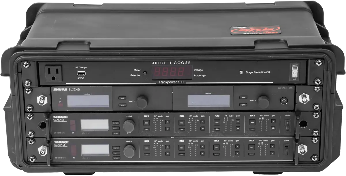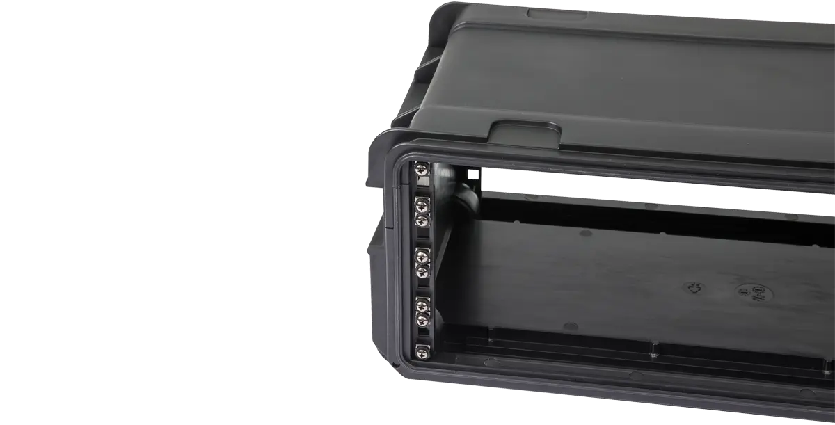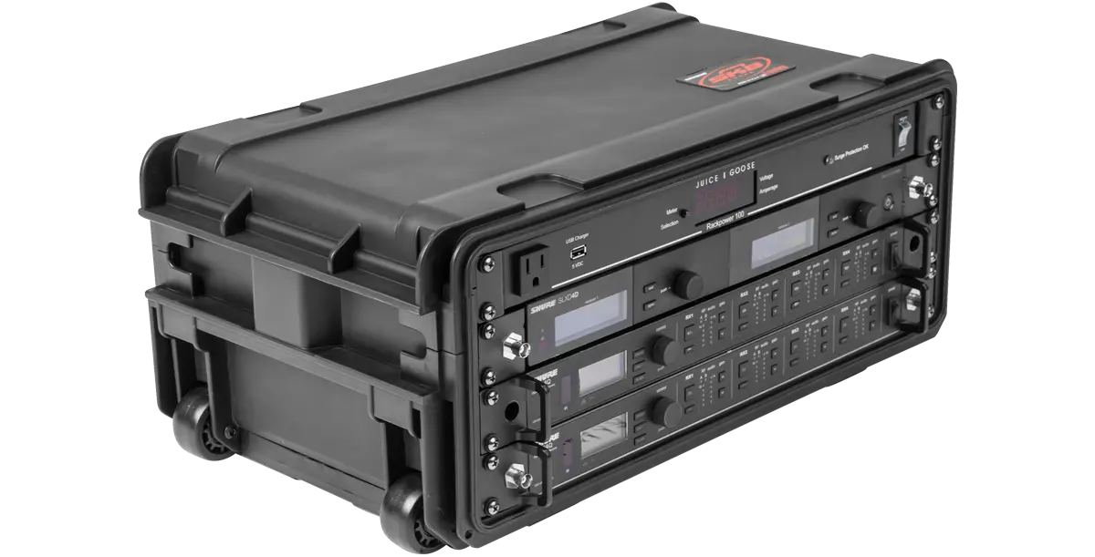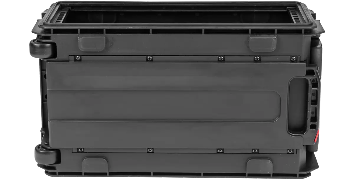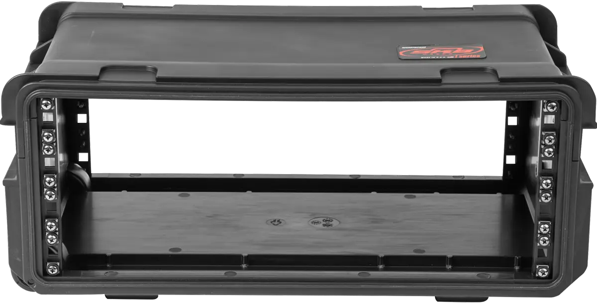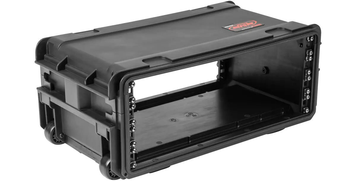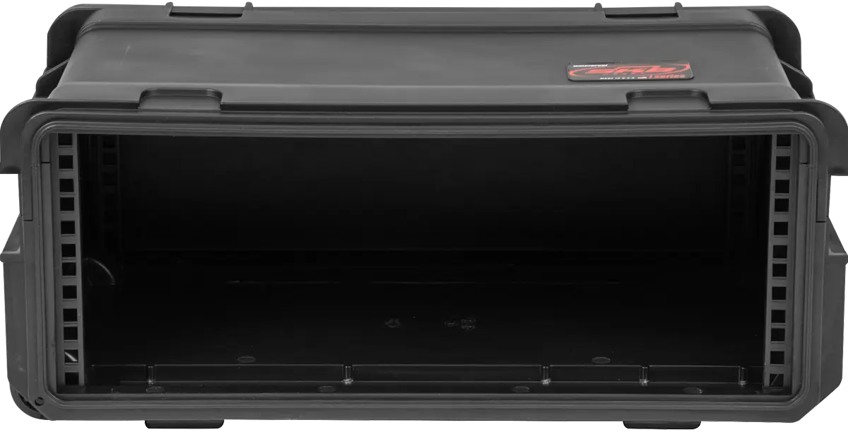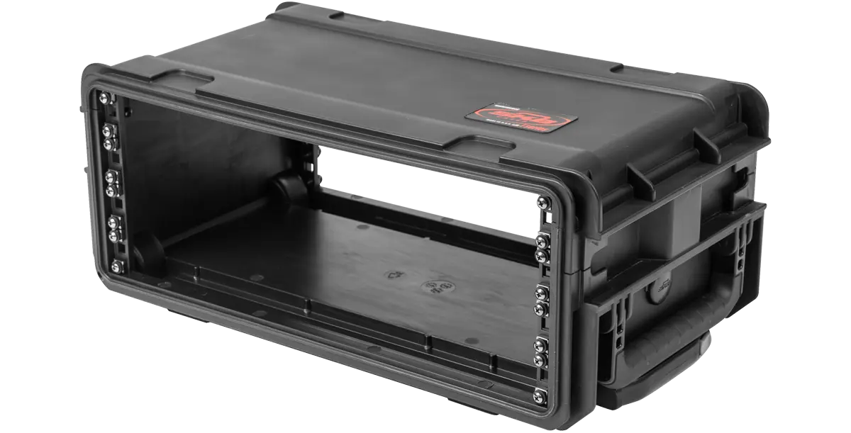 Lighter than conventional racks, this compact injection molded rack provides fast deployment of communications equipment with the added peace-of-mind that comes from being able to carry your gear with you into the aircraft cabin rather than check it. Features a 4U capacity, TSA-accessible locking latches, front and rear rack rails, gasket-sealed doors, and built-in wheels and telescoping pull handle. This case also includes a specially designed molded-in lip to protect the rack from the elements.