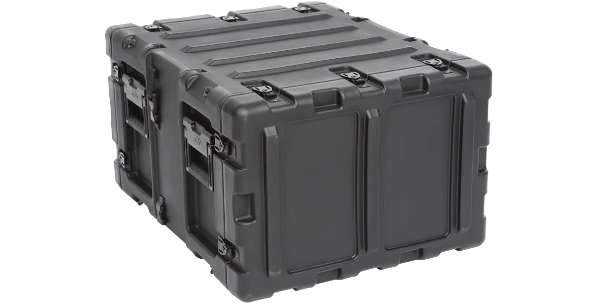 The rugged roto-molded shell ensures industry leading strength and impact resistance. The standard commercial off the shelf (COTS) case comes with 2" deep front and rear lids to accommodate rack gear that is longer than 20". Molded-in stacking ribs and lugs are designed to stack with all SKB 3RR and 3RS cases, as well as competitive manufacturer cases, and feature black powder coated stainless steel hardware that is recessed for protection and 4 comfort grip spring loaded lift handles which allow for easy movement. An automatic pressure relief valve is another standard feature along with gasket sealed lids that include convenient lid hangers to store your lids when your equipment is in operation. Coupling straps are included for securing the racks together when stacked.