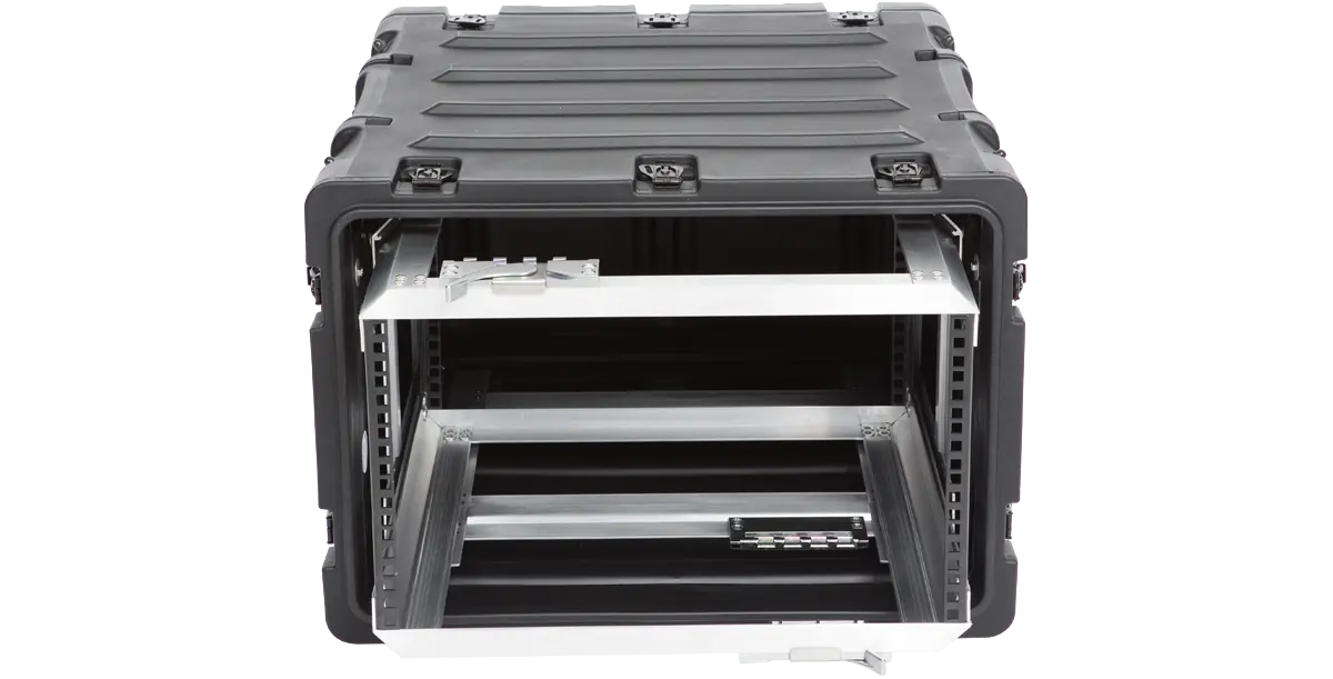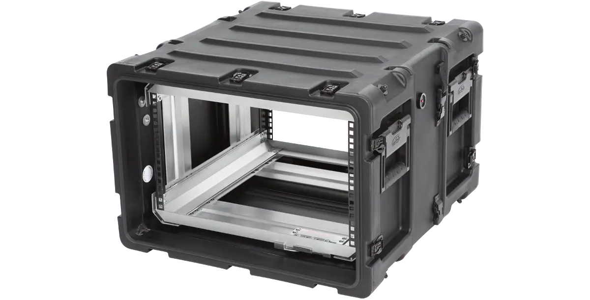 SKB's 3RR Series Removable Shock Rack Transport cases are available in 8 sizes: 3U, 4U, 5U, 6U, 7U, 9U, 11U and 14U. These Shock Racks are lightweight, shockproof, watertight, dustproof, heat and chemical resistant, perfect for protecting and transporting your sensitive electronic equipment.