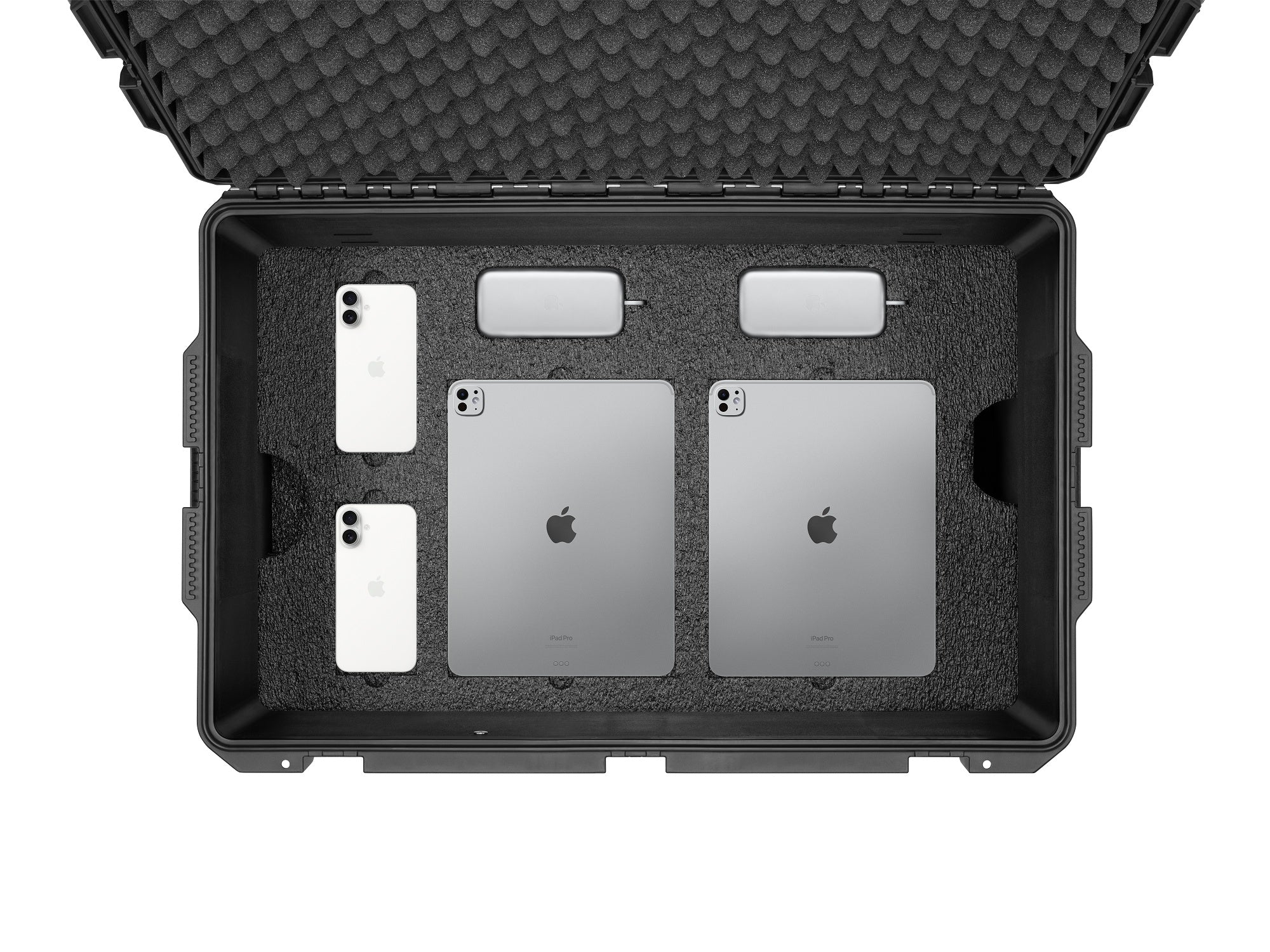 - Middle compartment: Apple Vision Pro Batteries, iPhones, iPads
